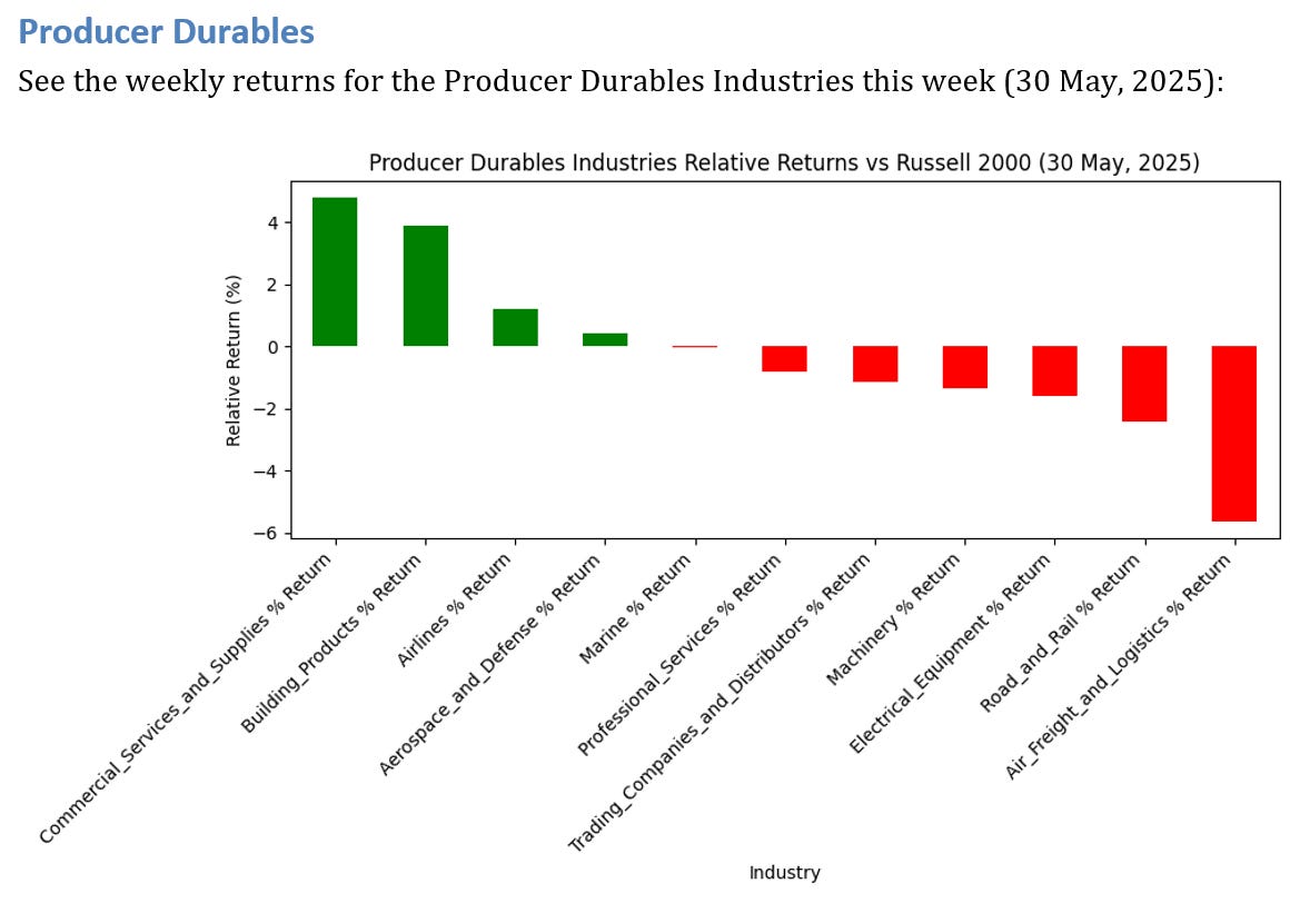 2 Producer Durables Industries OUTPERFORMED the Russell 2000 by >3%