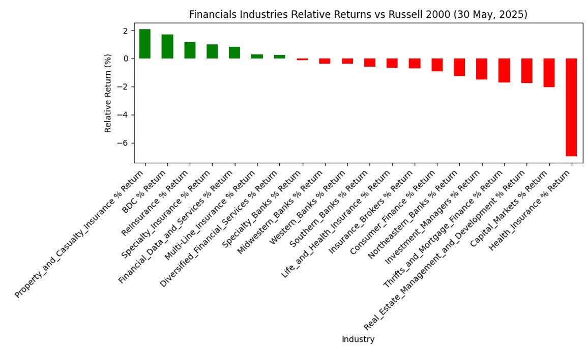 0 Financials Industries OUTPERFORMED the Russell 2000 by >3%