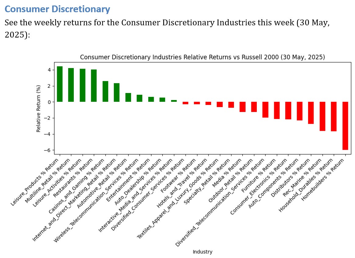 4 Consumer Discretionary Industries OUTPERFORMED the Russell 2000 by >3%