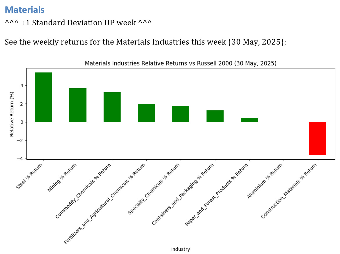 3 Materials Industries OUTPERFORMED the Russell 2000 by >3%
