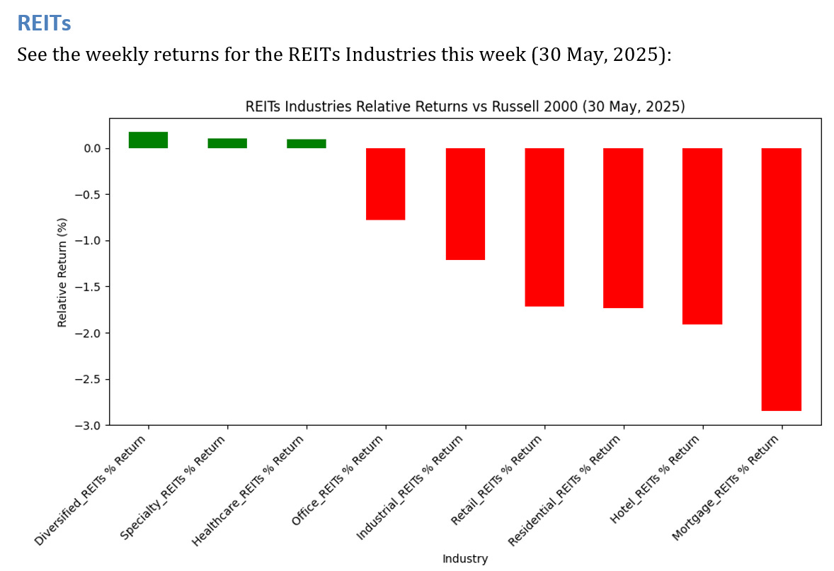 0 REITs Industries UNDERPERFORMED the Russell 2000 by >3%