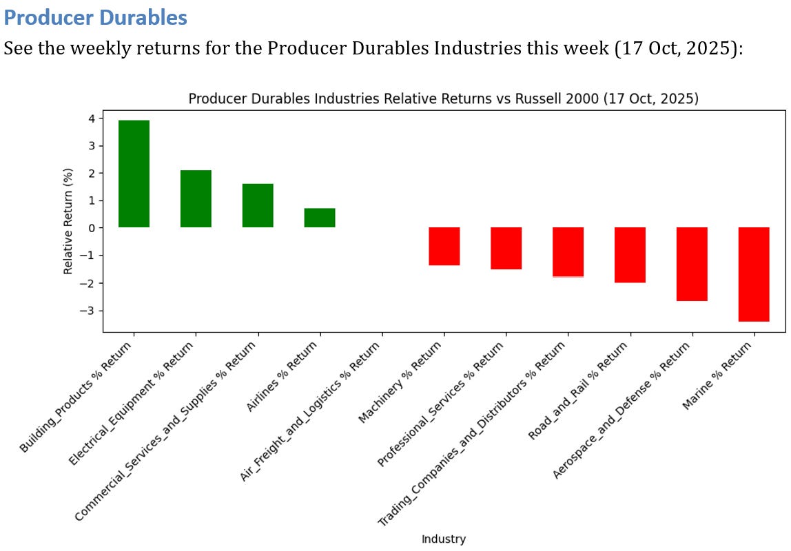 1 Producer Durables Industries OUTPERFORMED the Russell 2000 by >3%