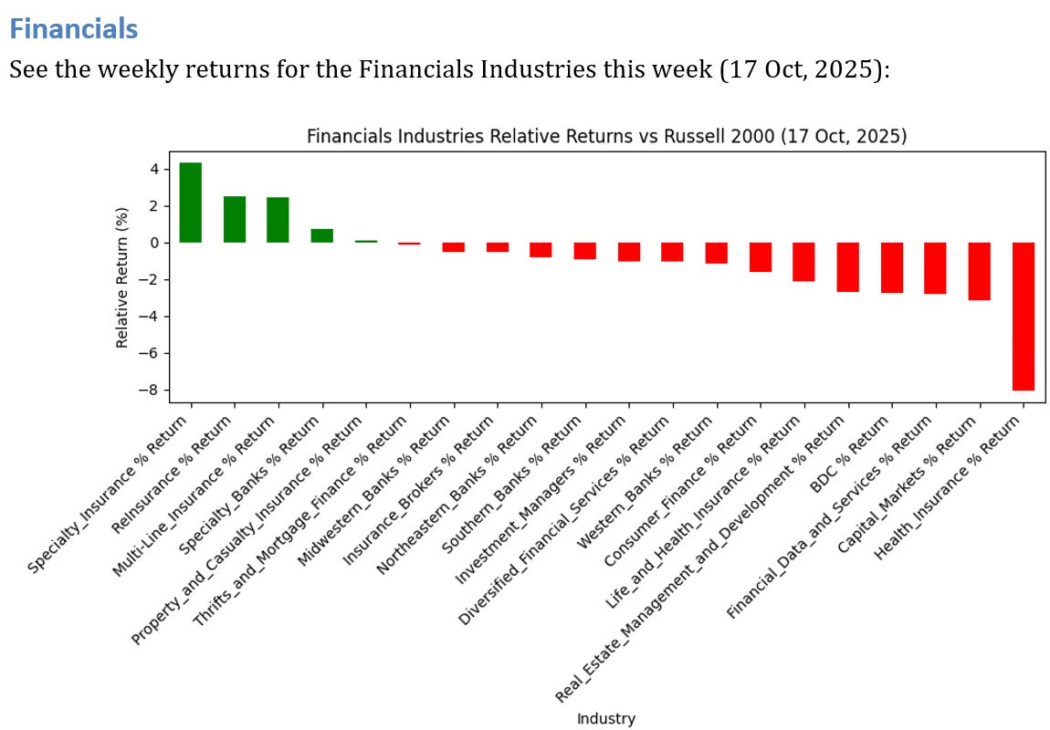 1 Financials Industries OUTPERFORMED the Russell 2000 by >3%
