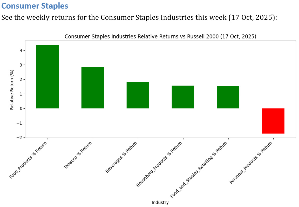 1 Consumer Staples Industries OUTPERFORMED the Russell 2000 by >3%
