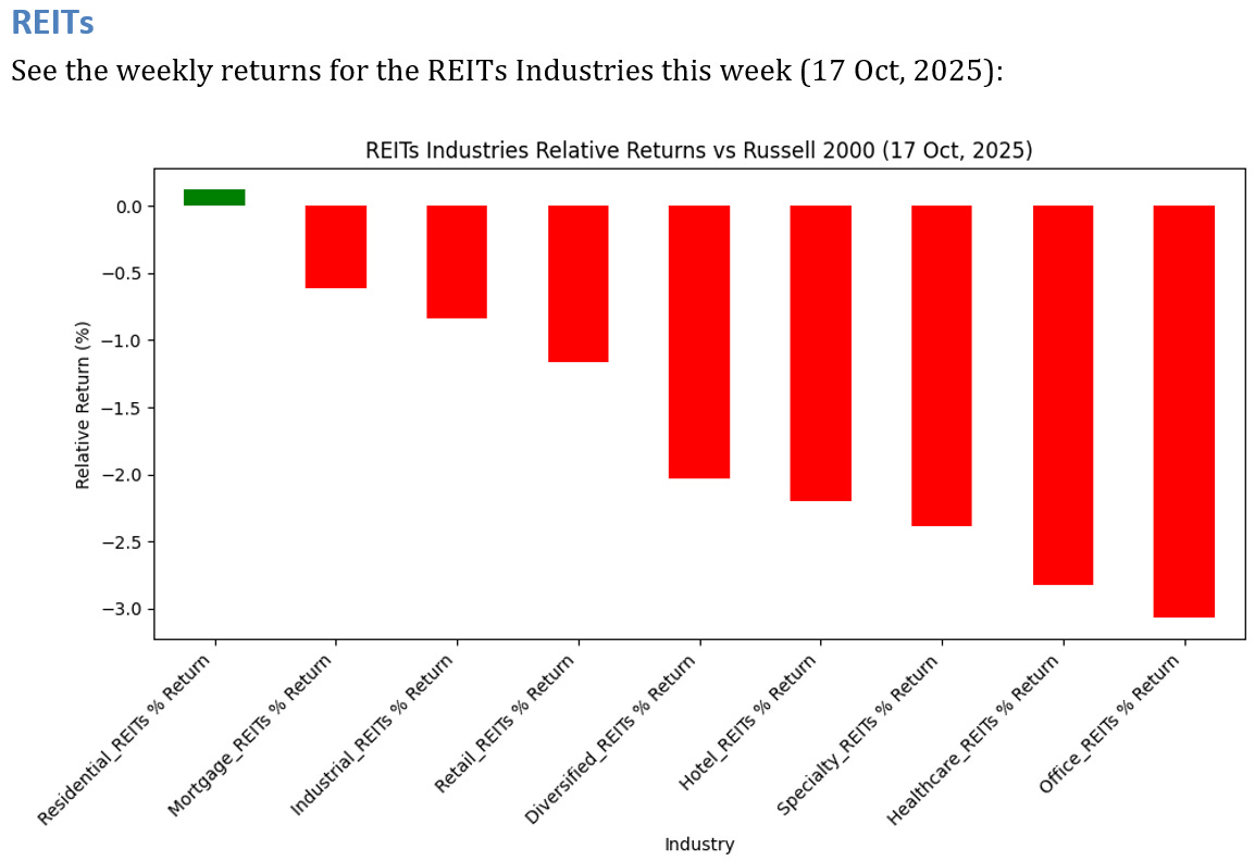 1 REITs Industries UNDERPERFORMED the Russell 2000 by >3%