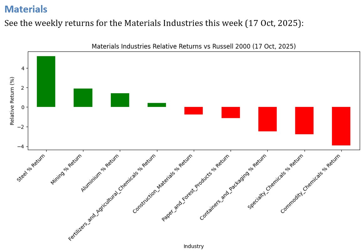 1 Materials Industries OUTPERFORMED the Russell 2000 by >3%