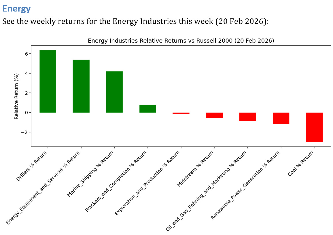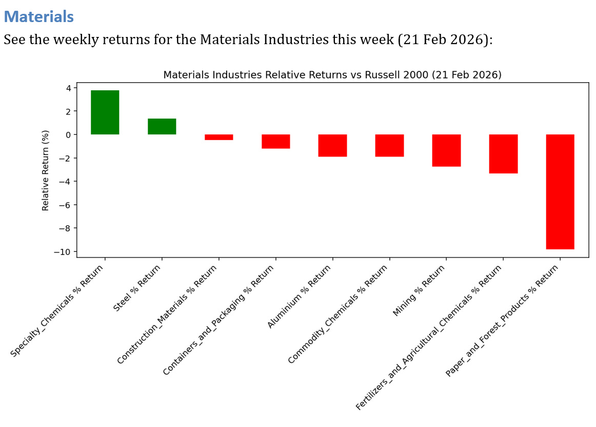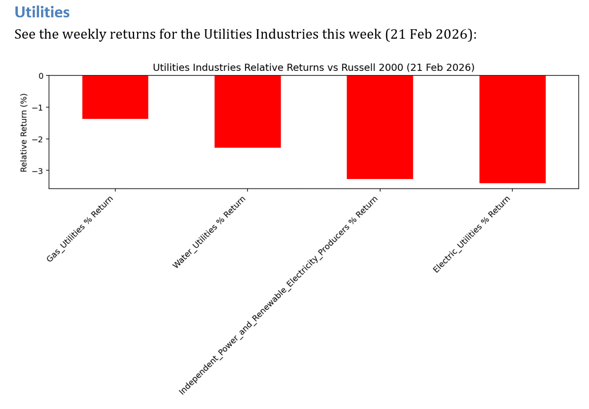 1 industries underperformed by >3.0% this week