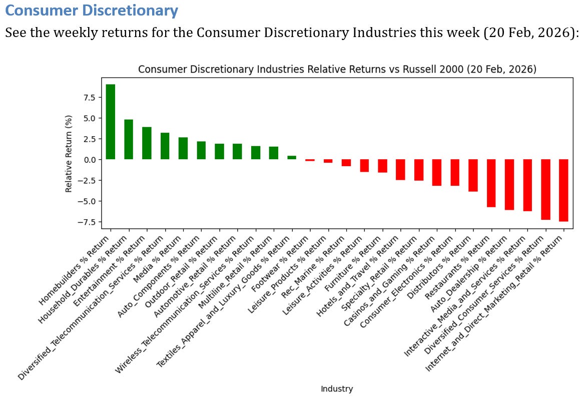 8 Consumer Discretionary Industries UNDERPERFORMED the Russell 2000 by >3%