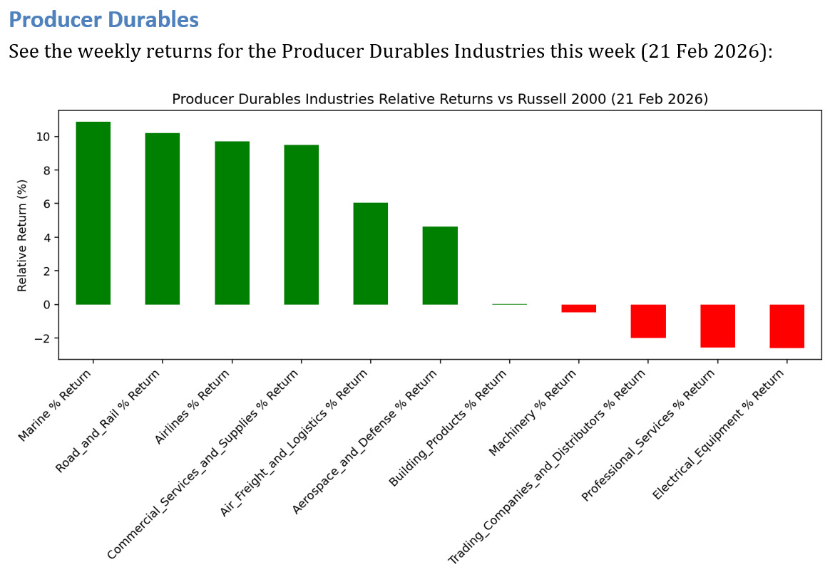 6 industries outperformed by >3.0% this week
