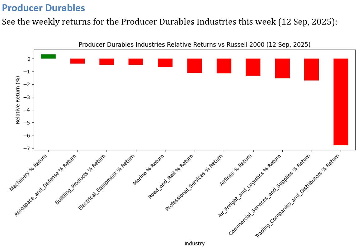 1 Producer Durables Industries UNDERPERFORMED the Russell 2000 by >3%