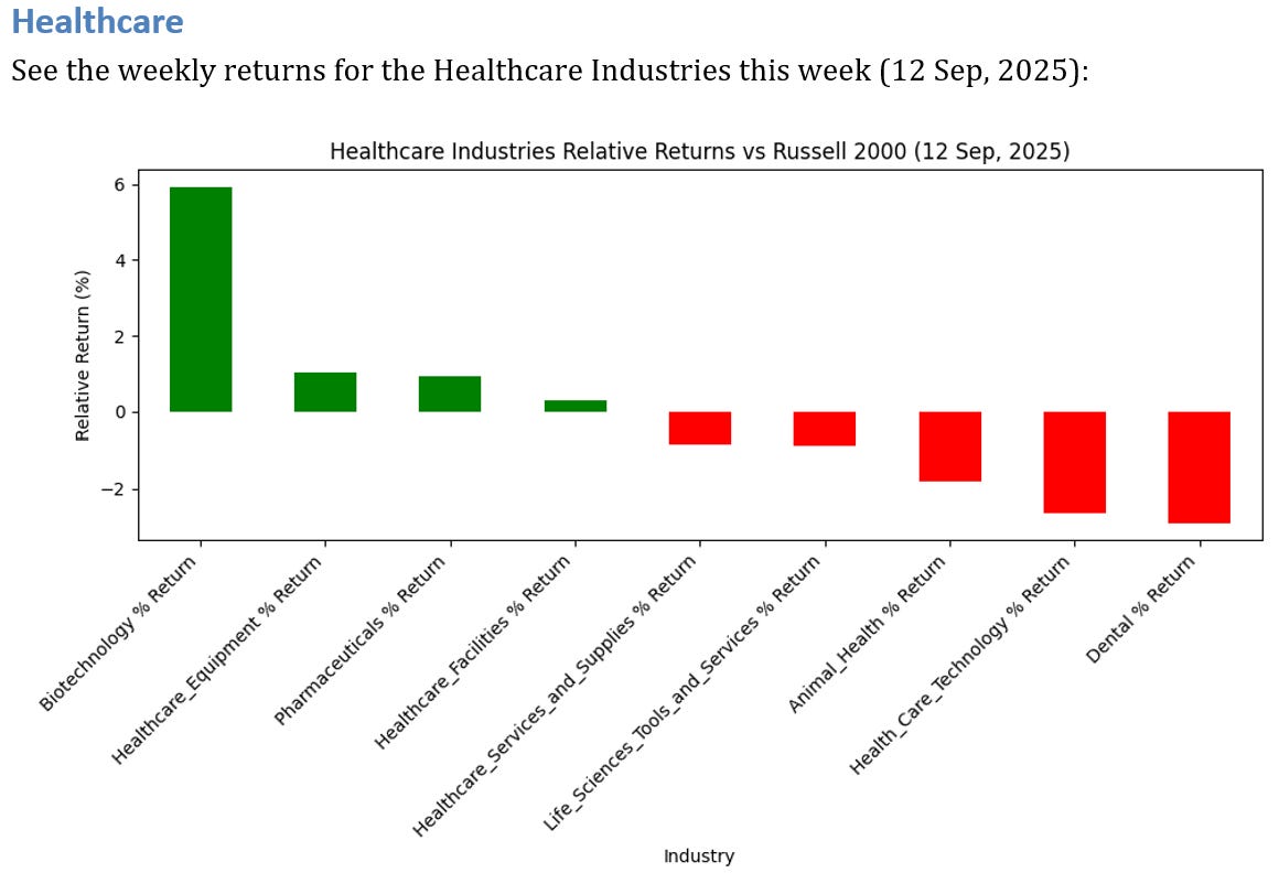 0 Healthcare Industries UNDERPERFORMED the Russell 2000 by >3%
