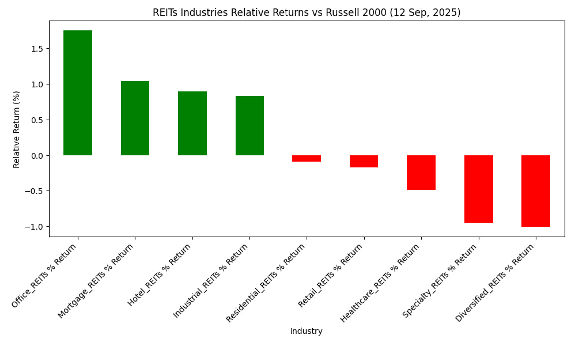 0 REITs Industries UNDERPERFORMED the Russell 2000 by >3%
