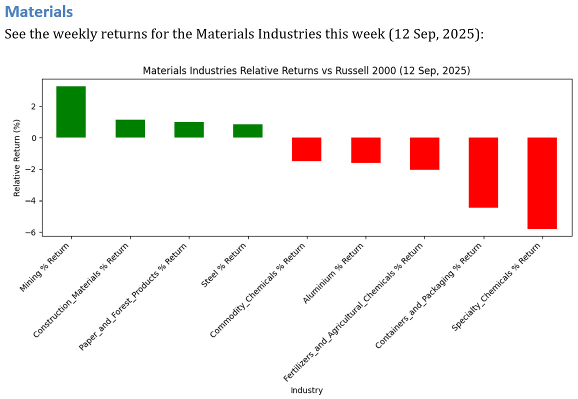 1 Materials Industries OUTPERFORMED the Russell 2000 by >3%