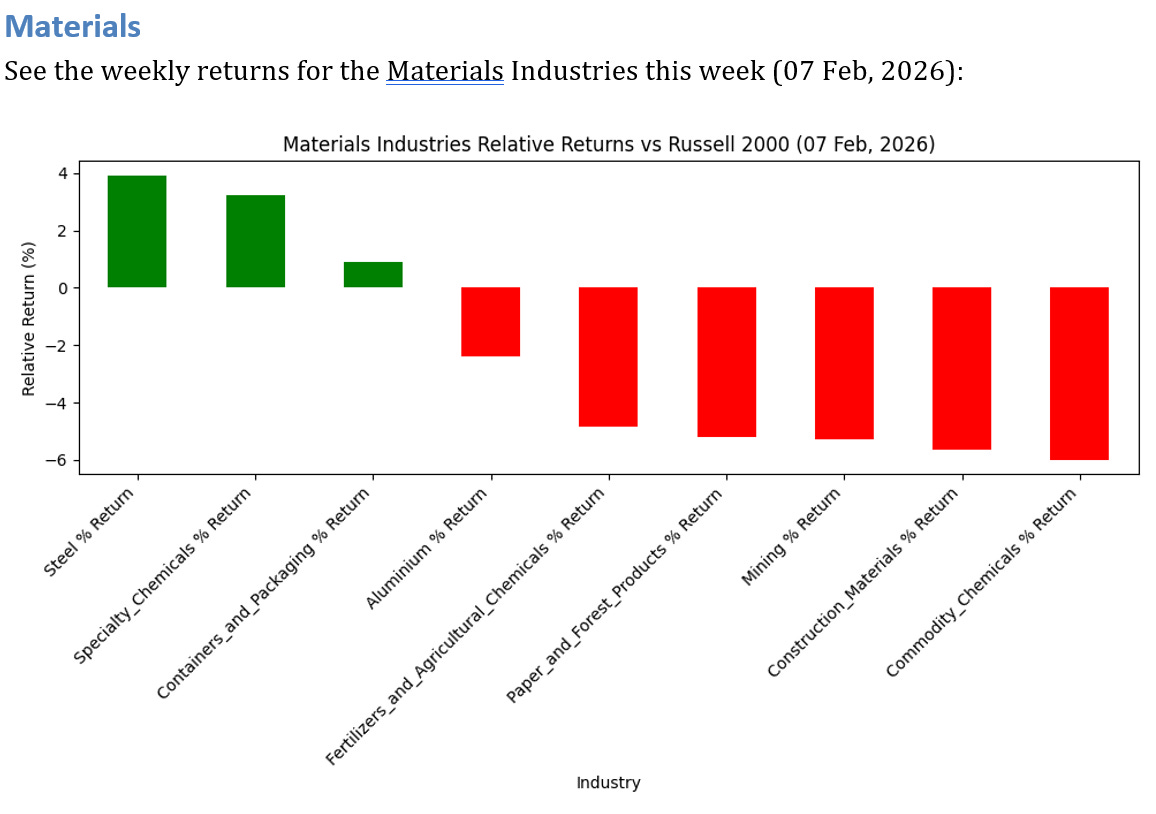 5 Materials Industries UNDERPERFORMED the Russell 2000 by >3%