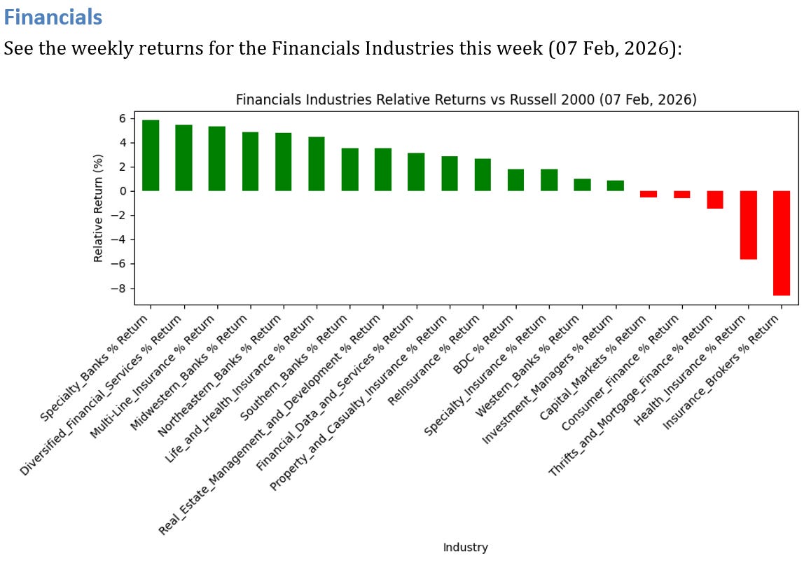 9 Financials Industries OUTPERFORMED the Russell 2000 by >3%