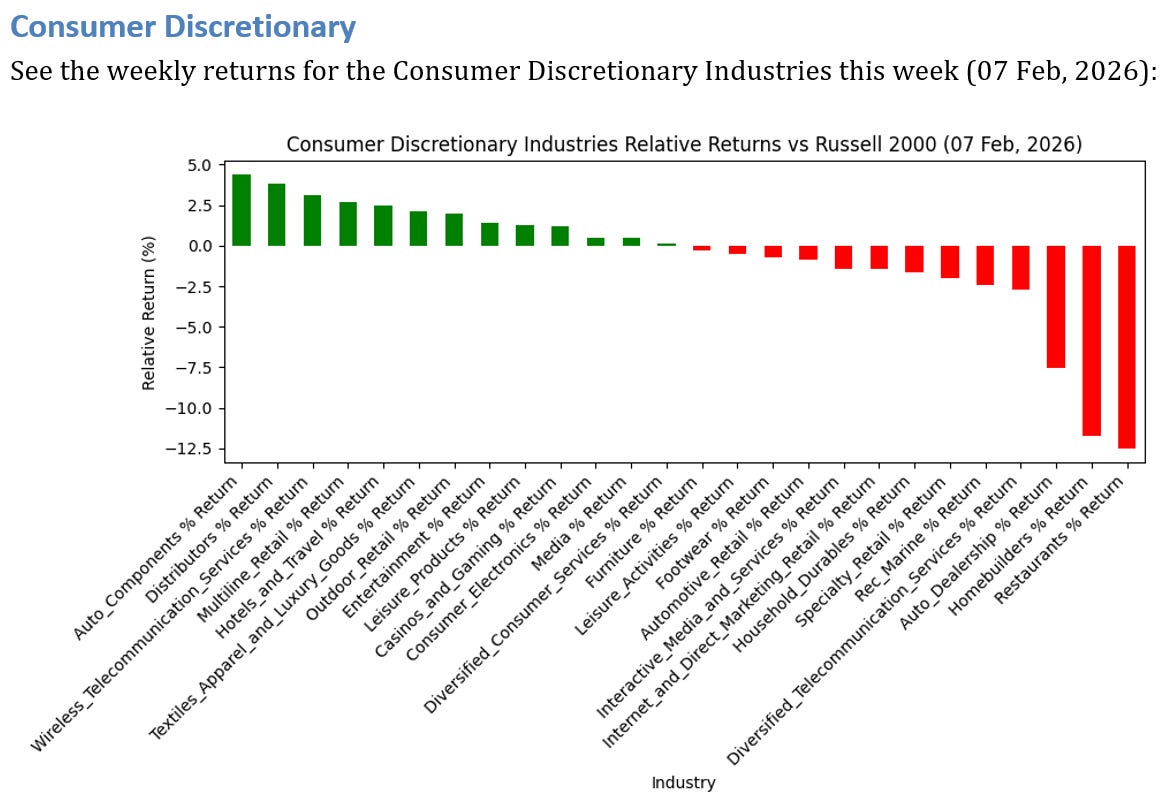 3 Consumer Discretionary Industries UNDERPERFORMED the Russell 2000 by >3%