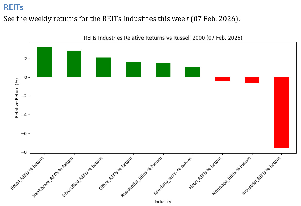 1 REITs Industries OUTPERFORMED the Russell 2000 by >3%