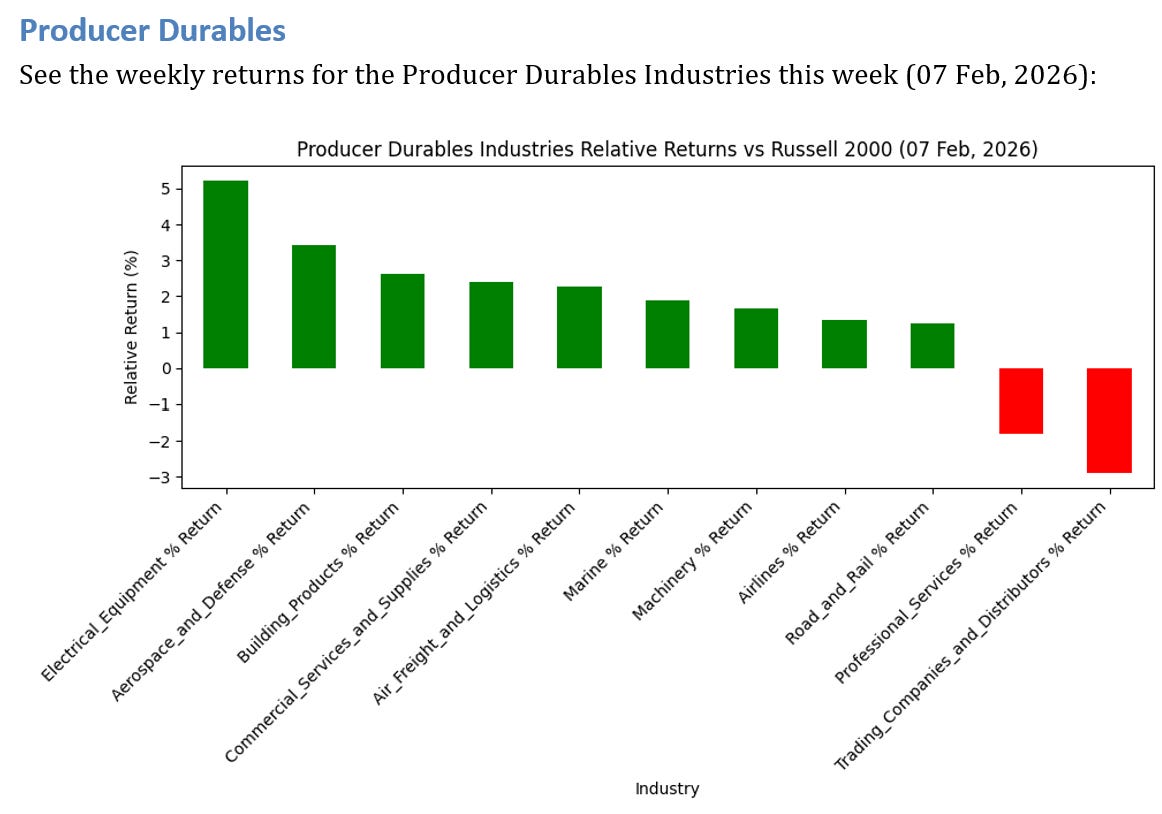 2 Producer Durables Industries OUTPERFORMED the Russell 2000 by >3%