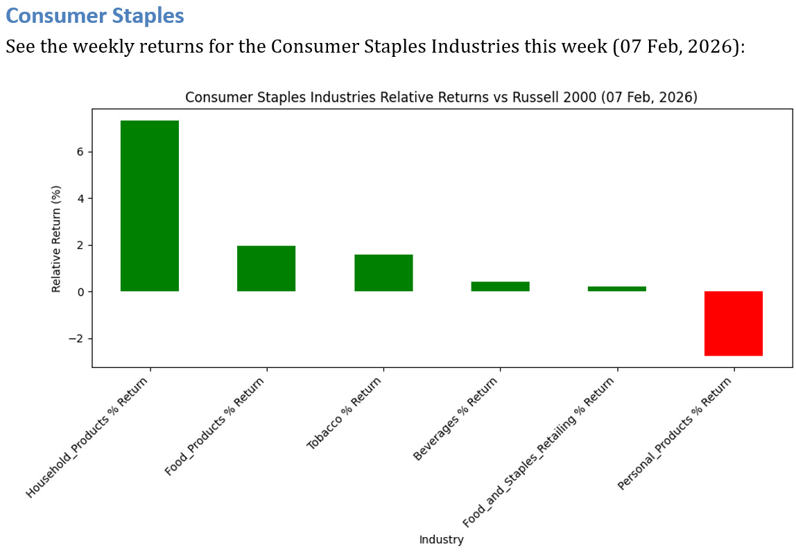 1 Consumer Staples Industries OUTPERFORMED the Russell 2000 by >3%