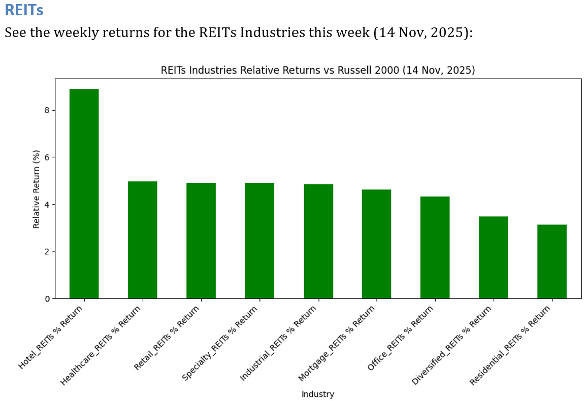 9 REITs Industries OUTPERFORMED the Russell 2000 by >3%