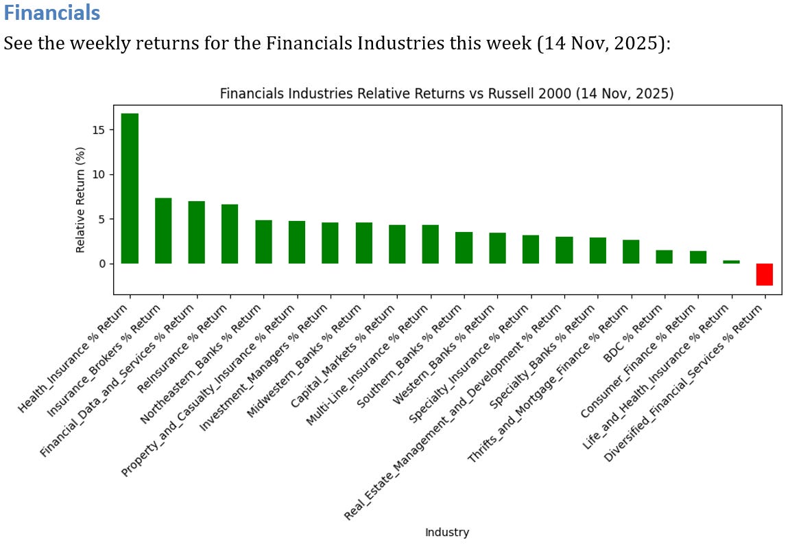13 Financials Industries OUTPERFORMED the Russell 2000 by >3%