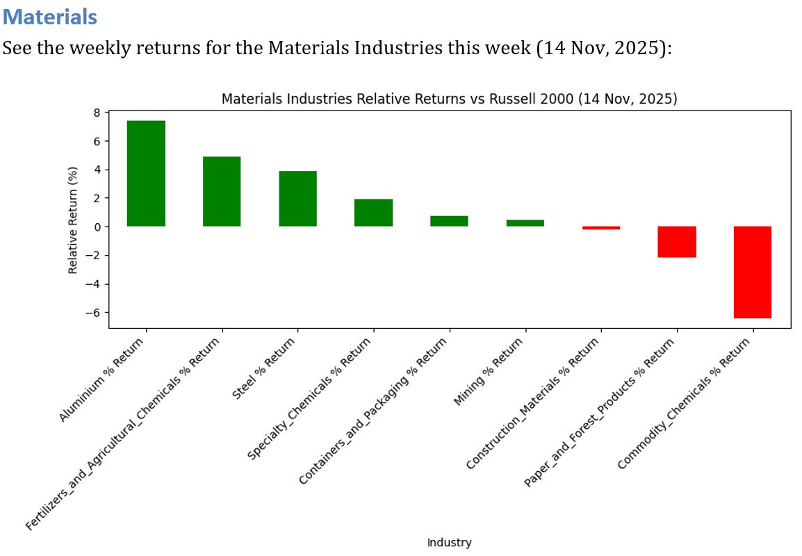 3 Materials Industries OUTPERFORMED the Russell 2000 by >3%
