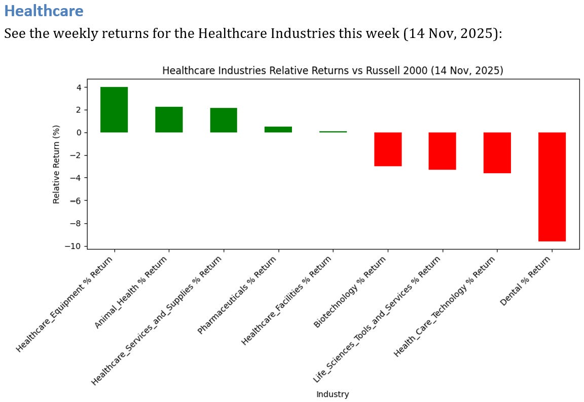 3 Healthcare Industries UNDERPERFORMED the Russell 2000 by >3%