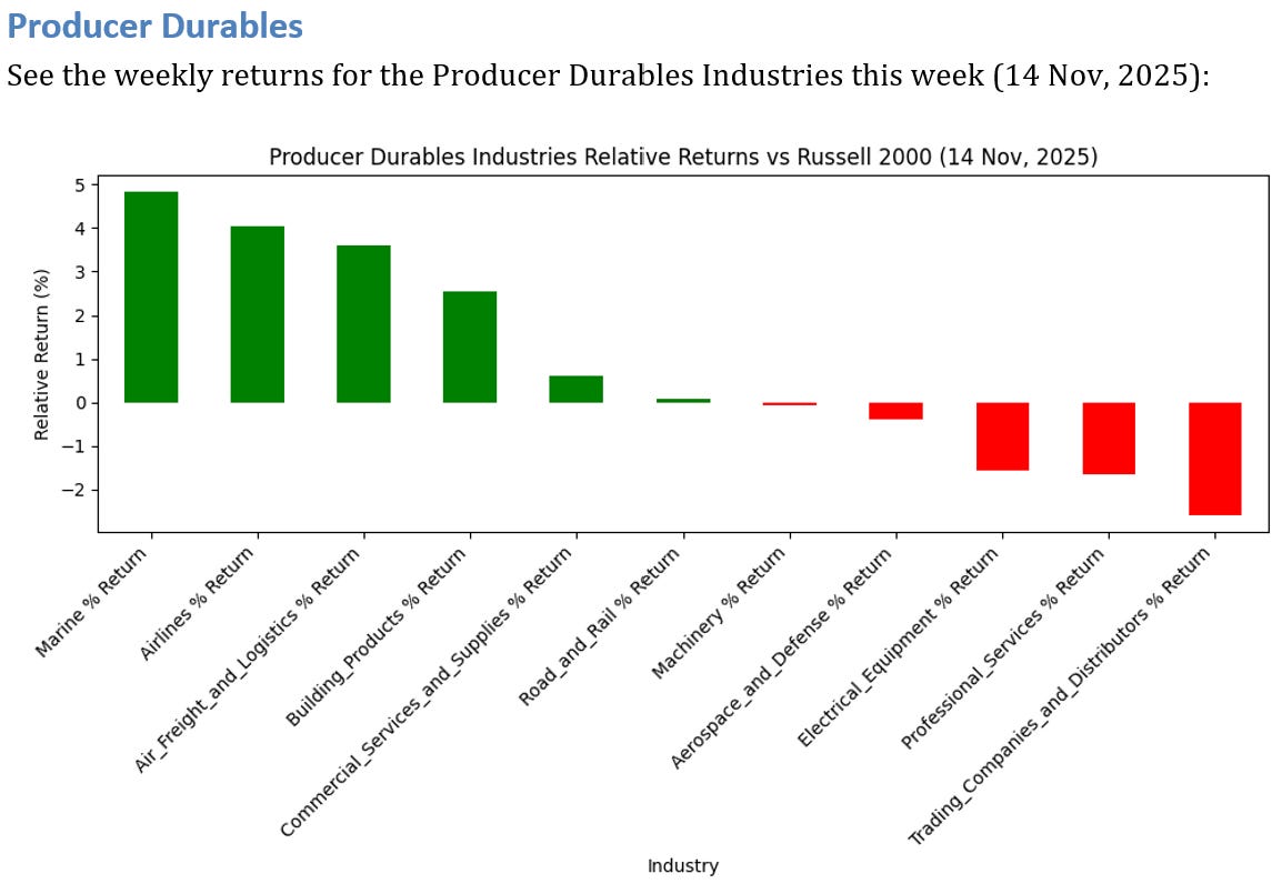 3 Producer Durables Industries OUTPERFORMED the Russell 2000 by >3%