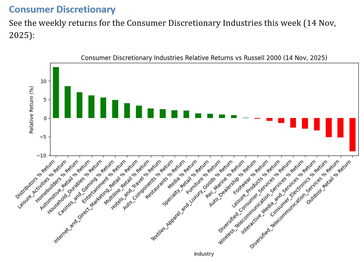 4 Consumer Discretionary Industries UNDERPERFORMED the Russell 2000 by >3%