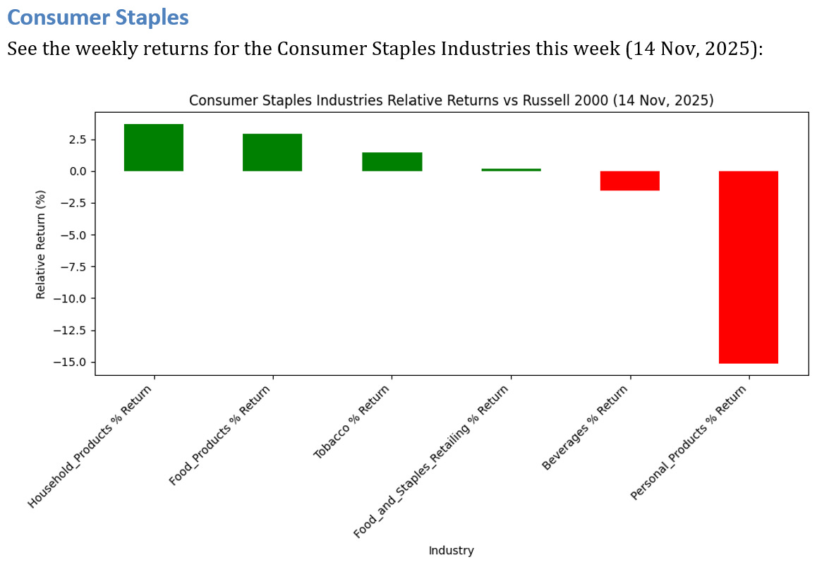 1 Consumer Staples Industries UNDERPERFORMED the Russell 2000 by >3%