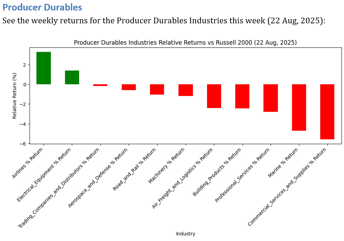 1 Producer Durables Industries OUTPERFORMED the Russell 2000 by >3%
