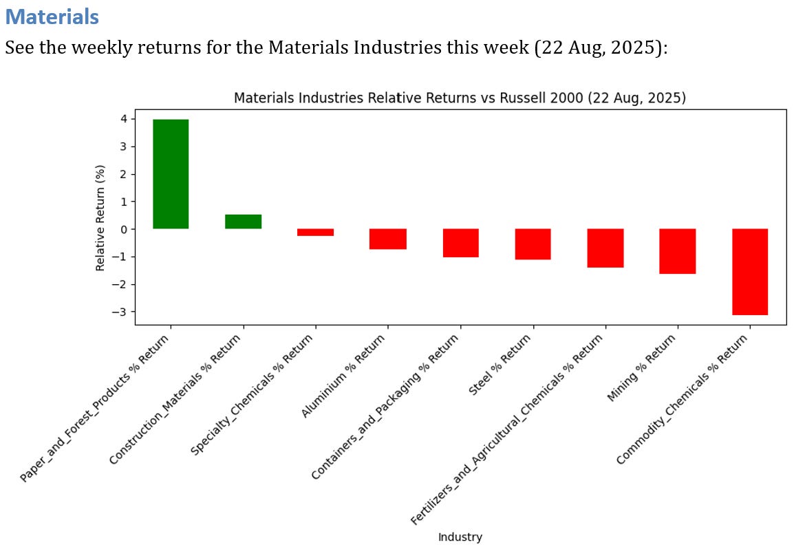 1 Materials Industries UNDERPERFORMED the Russell 2000 by >3%