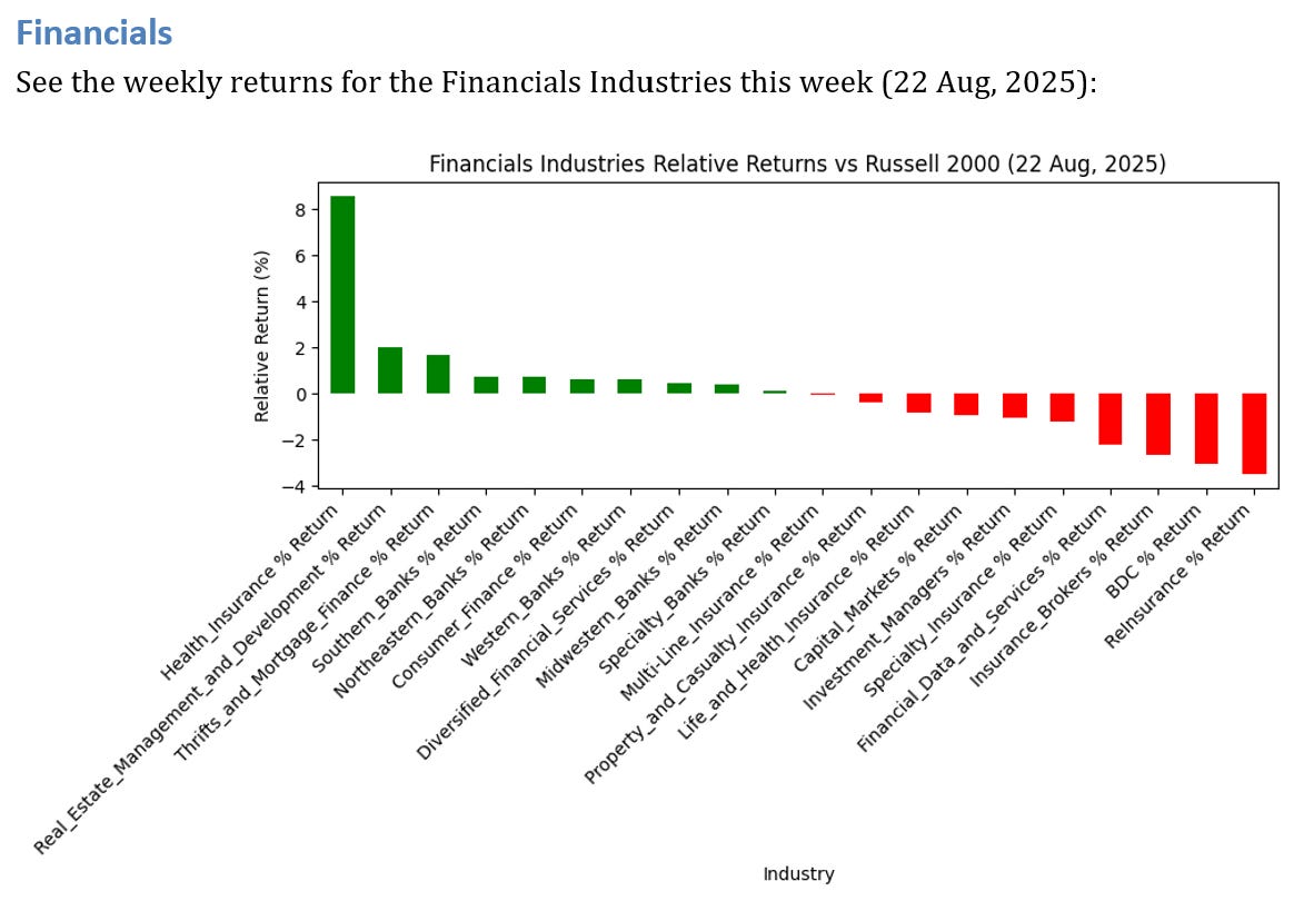 1 Financials Industries OUTPERFORMED the Russell 2000 by >3%