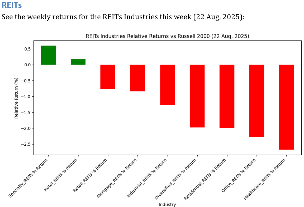 0 REITs Industries UNDERPERFORMED the Russell 2000 by >3%