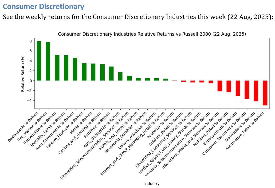 8 Consumer Discretionary Industries OUTPERFORMED the Russell 2000 by >3%