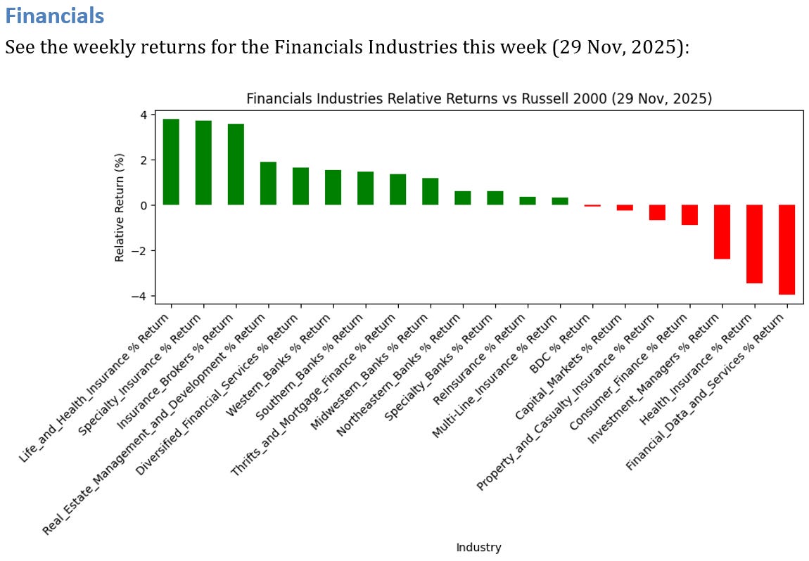 3 Financials Industries OUTPERFORMED the Russell 2000 by >3%
