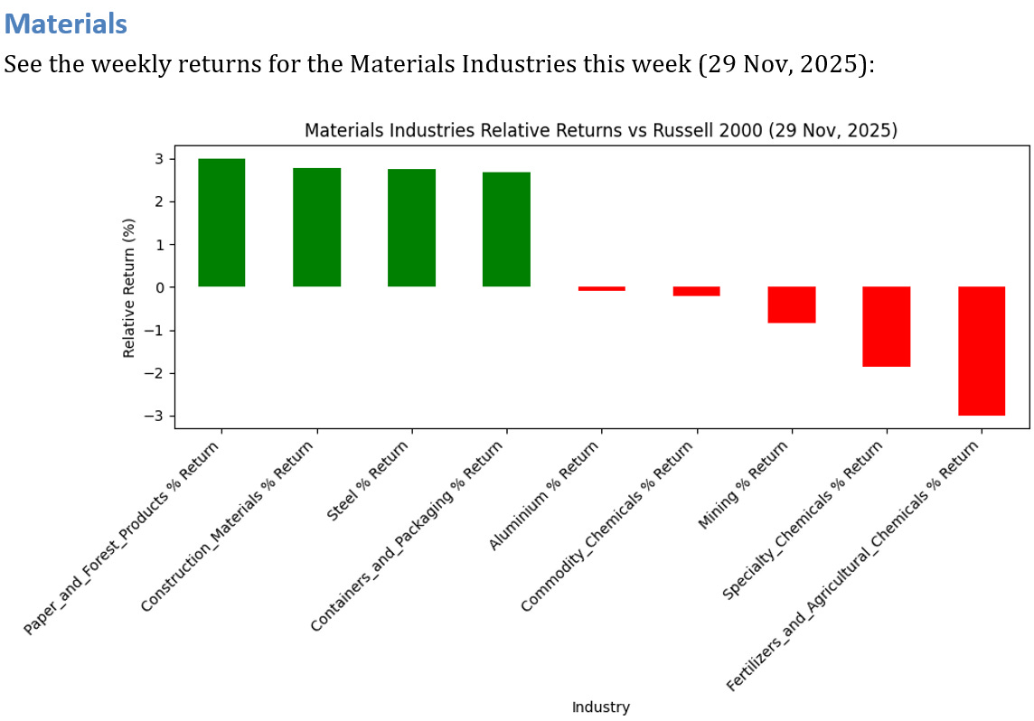 0 Materials Industries UNDERPERFORMED the Russell 2000 by >3%