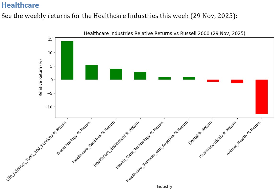 3 Healthcare Industries OUTPERFORMED the Russell 2000 by >3%