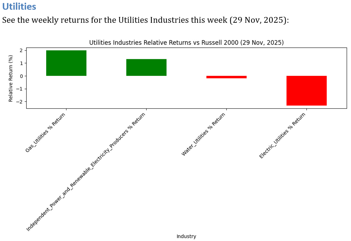 See below for the weekly performance of 4 Utilities Industries.