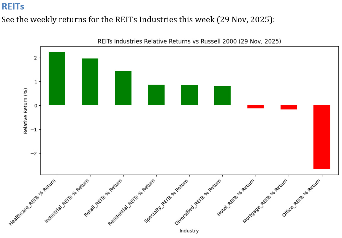 See below for the weekly performance of 9 REITs Industries.