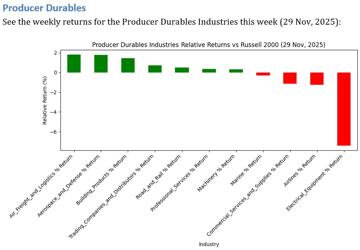 1 Producer Durables Industries UNDERPERFORMED the Russell 2000 by >3%