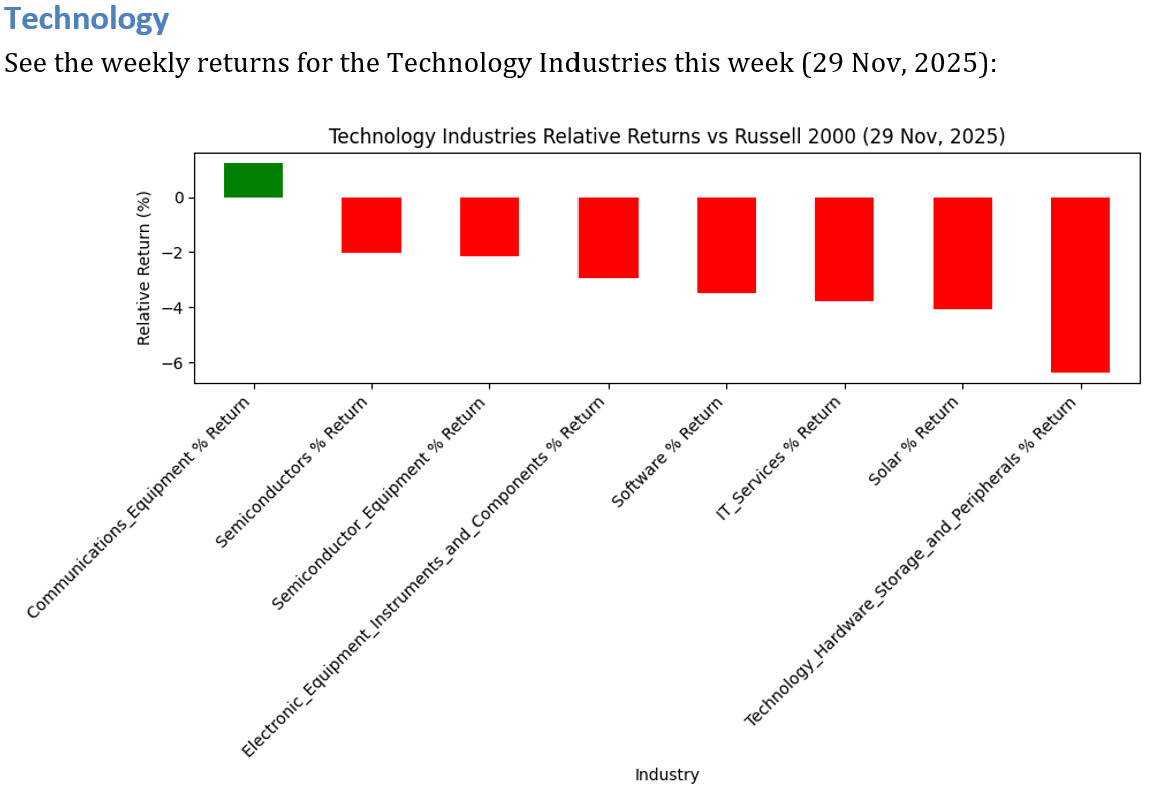4 Technology Industries UNDERPERFORMED the Russell 2000 by >3%