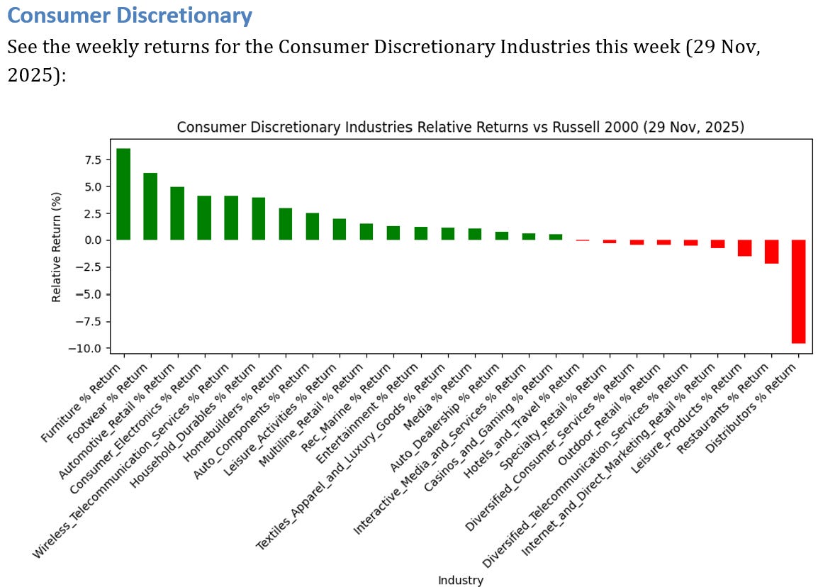 6 Consumer Discretionary Industries OUTPERFORMED the Russell 2000 by >3%