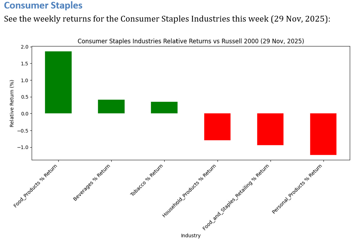 0 Consumer Staples Industries UNDERPERFORMED the Russell 2000 by >3%