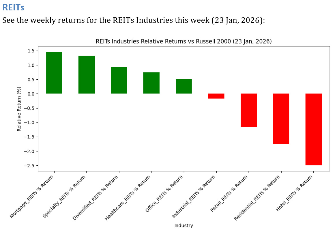 See below for the weekly performance of 9 REITs Industries.