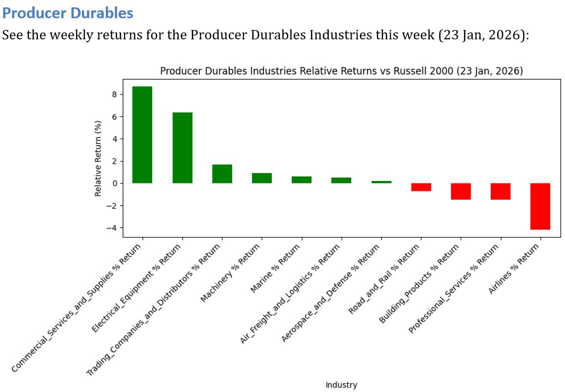2 Producer Durables Industries OUTPERFORMED the Russell 2000 by >3%