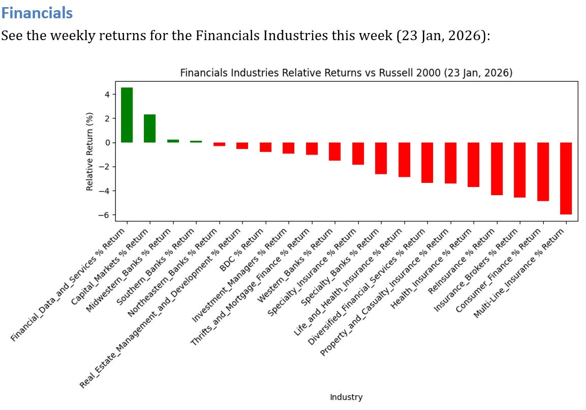7 Financials Industries UNDERPERFORMED the Russell 2000 by >3%