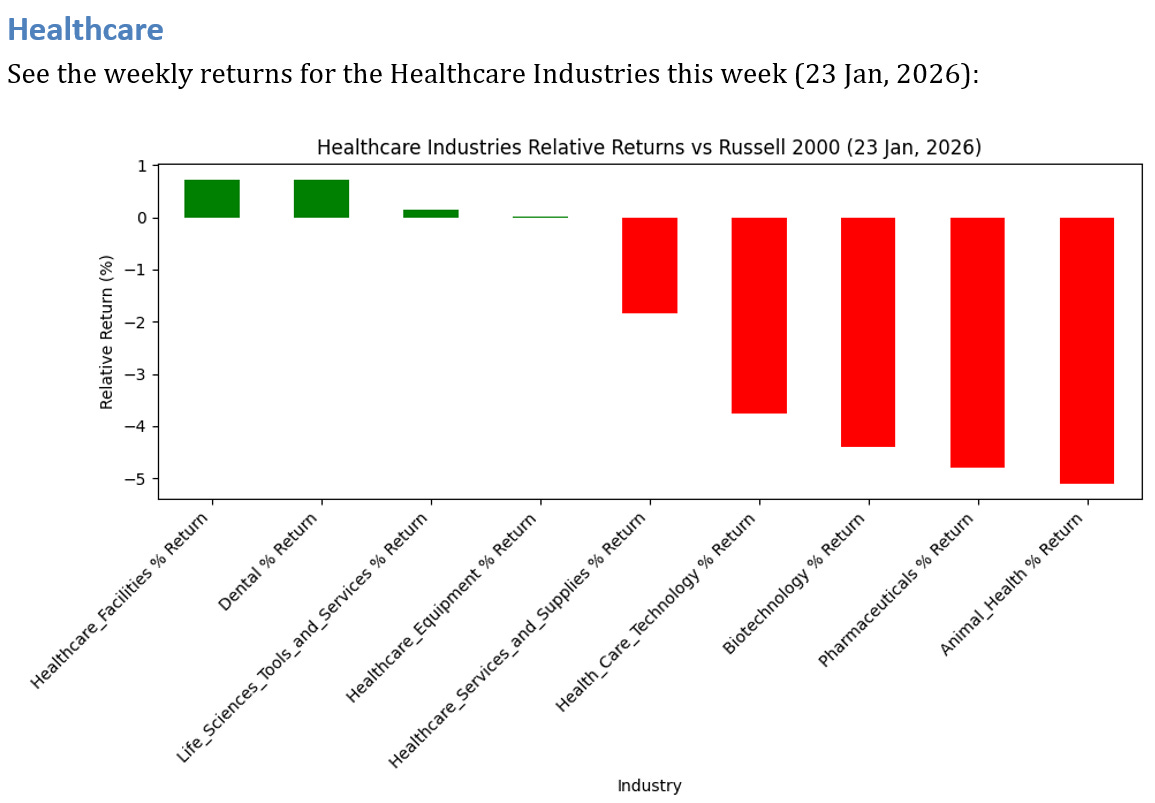 4 Healthcare Industries UNDERPERFORMED the Russell 2000 by >3%