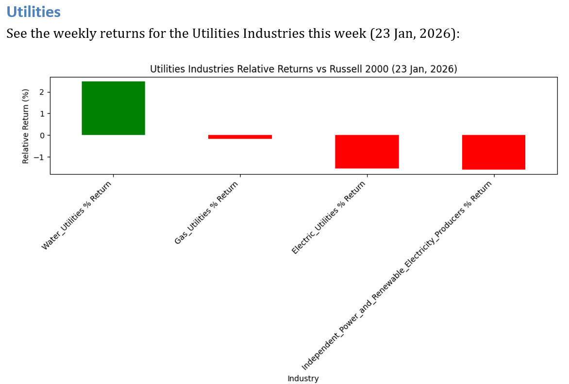 See below for the weekly performance of 4 Utilities Industries.