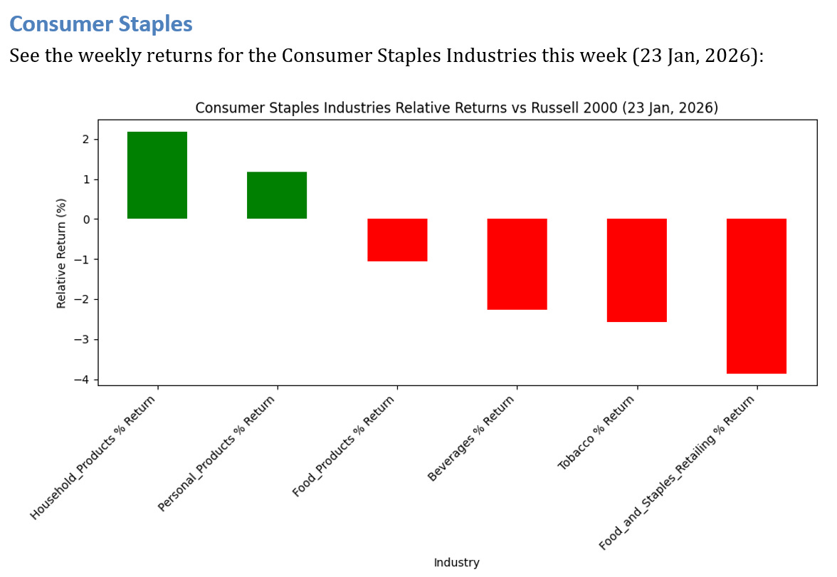 1 Consumer Staples Industries UNDERPERFORMED the Russell 2000 by >3%